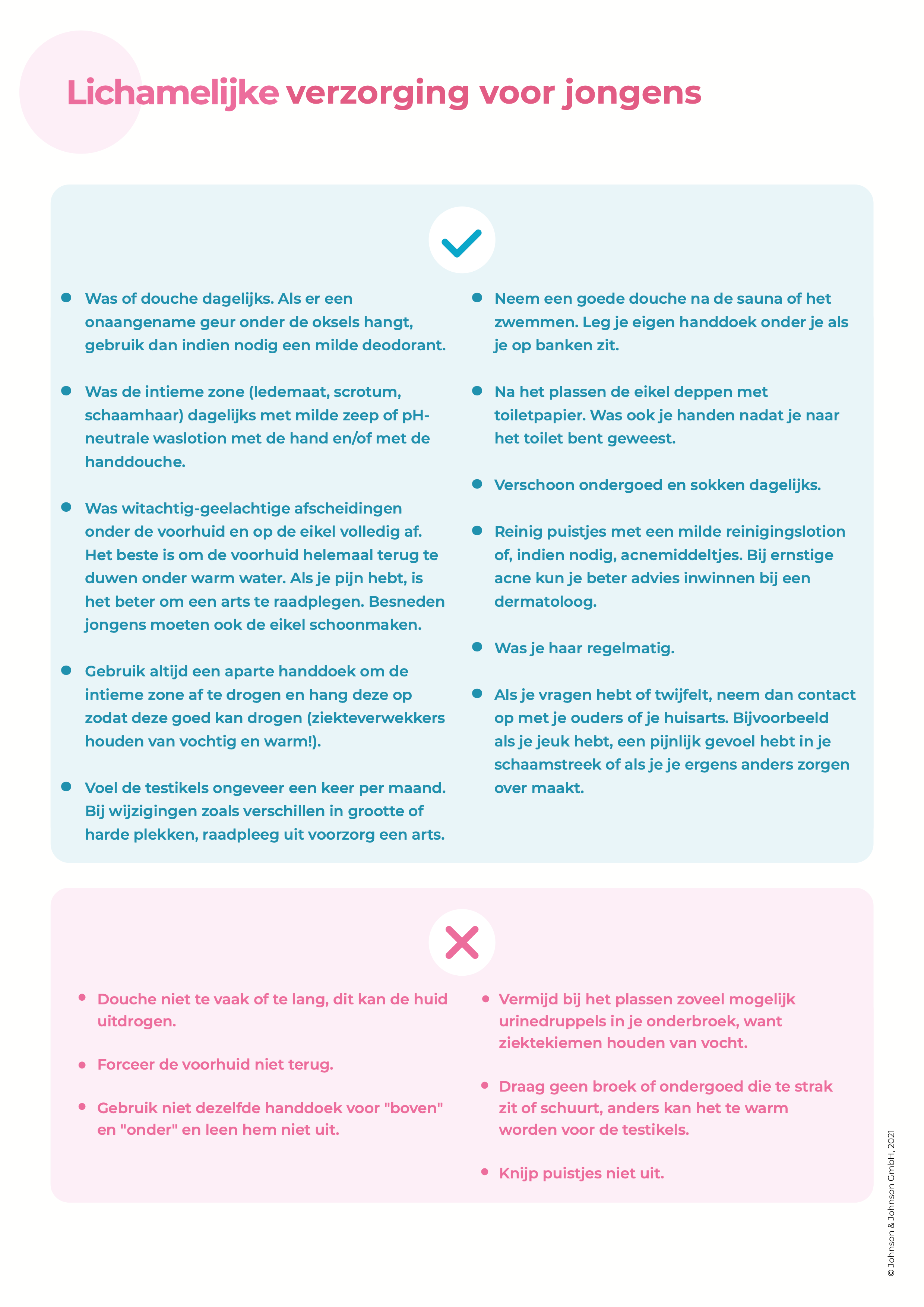 Het is daarom belangrijk om jonge mensen duidelijk te maken dat lichamelijke ontwikkeling volkomen natuurlijk is en dat het ook normaal is dat dit niet op dezelfde leeftijd gebeurt. Want elk lichaam heeft zijn eigen ritme en ontwikkelt zich individueel.